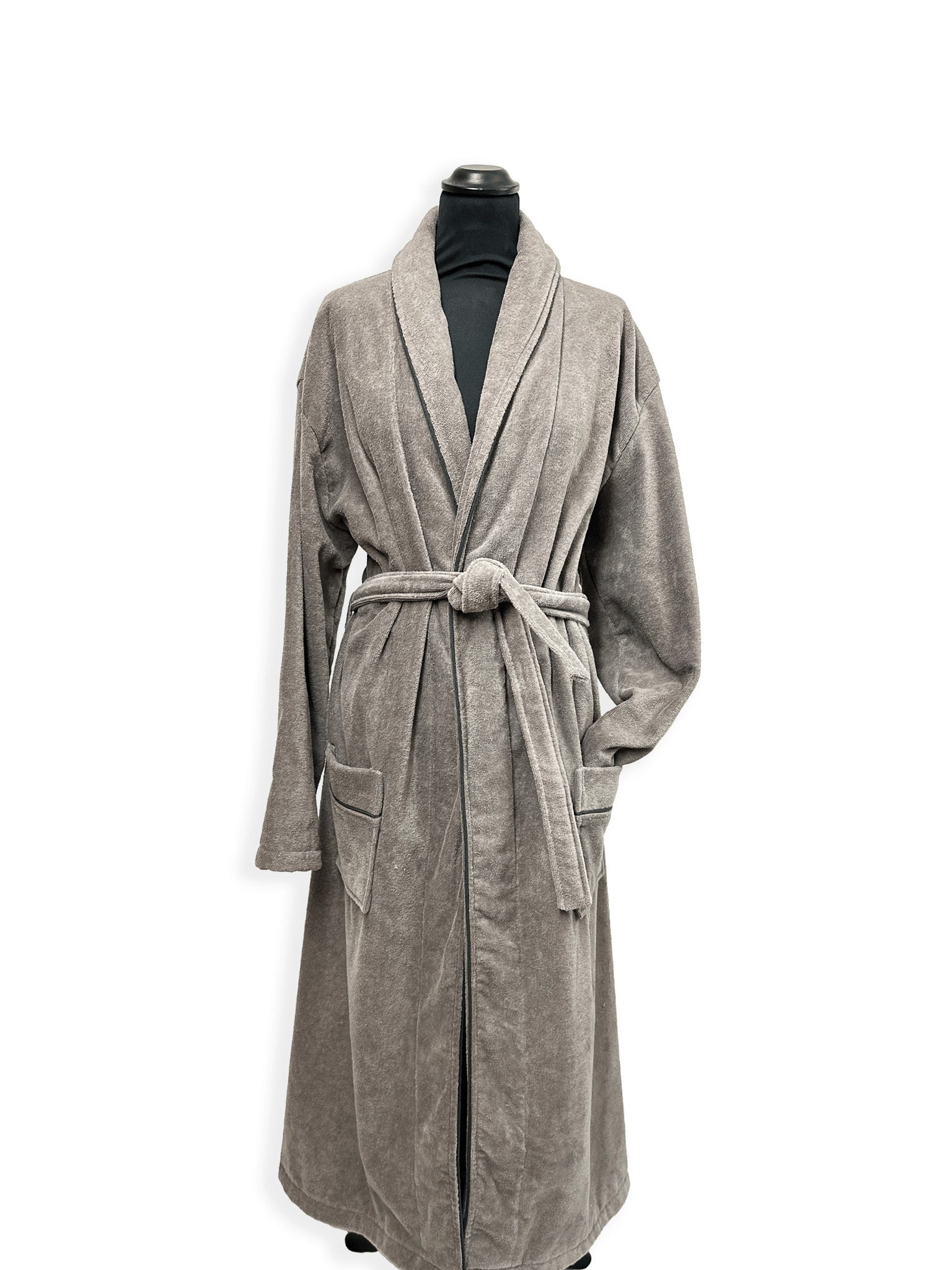 Badrock i grå frotté velour – Designad för Hotell och Spa