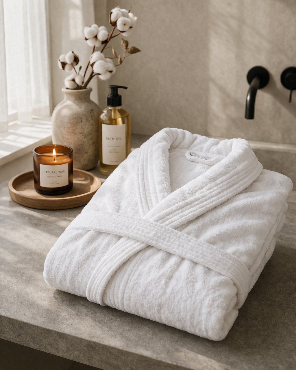 Tillverkad i mjuk frotté velour som kombinerar hög absorptionsförmåga med en len, varm känsla mot huden. Den robusta konstruktionen säkerställer lång hållbarhet även vid regelbunden användning.