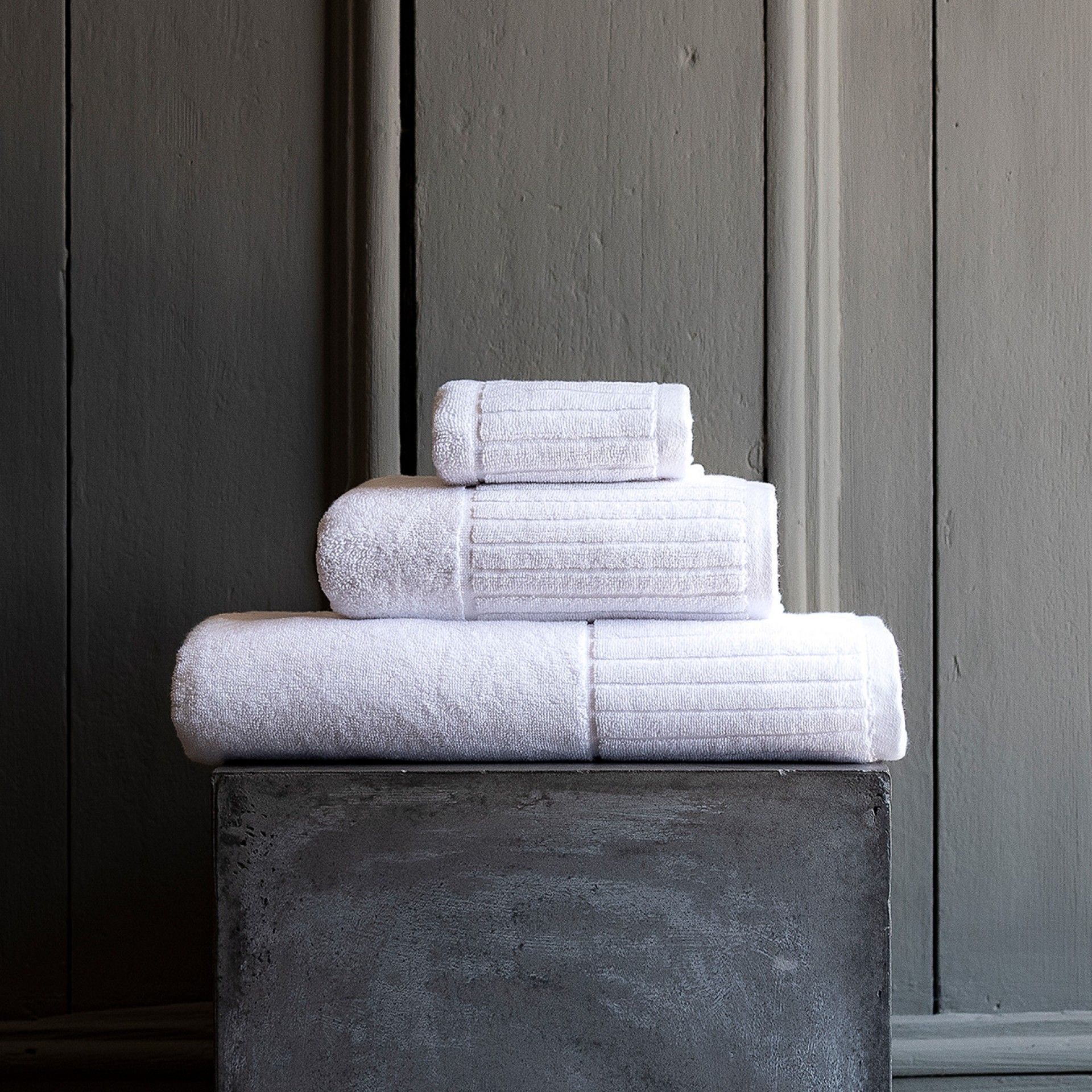 Hotellhandduk med kort och tät frotté från Portugisiska Sorema.