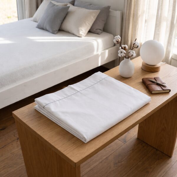 Bomullen ger en mjuk och naturlig känsla medan polyestern bidrar till slitstyrka och snabbare torktid. Resultatet är ett lakan som känns svalt och torrt, även vid daglig användning.