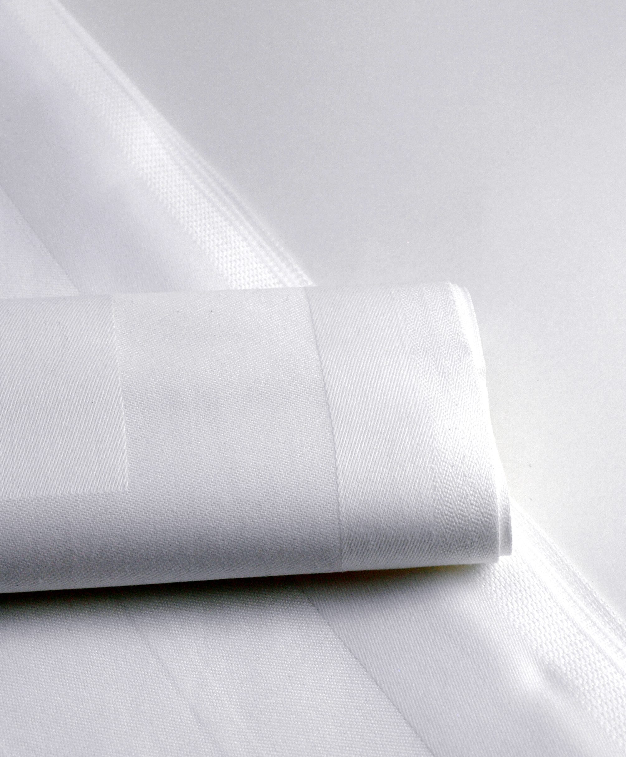 Stilren vit servett i 100% bomull med bred rand för det klassiska bordet.