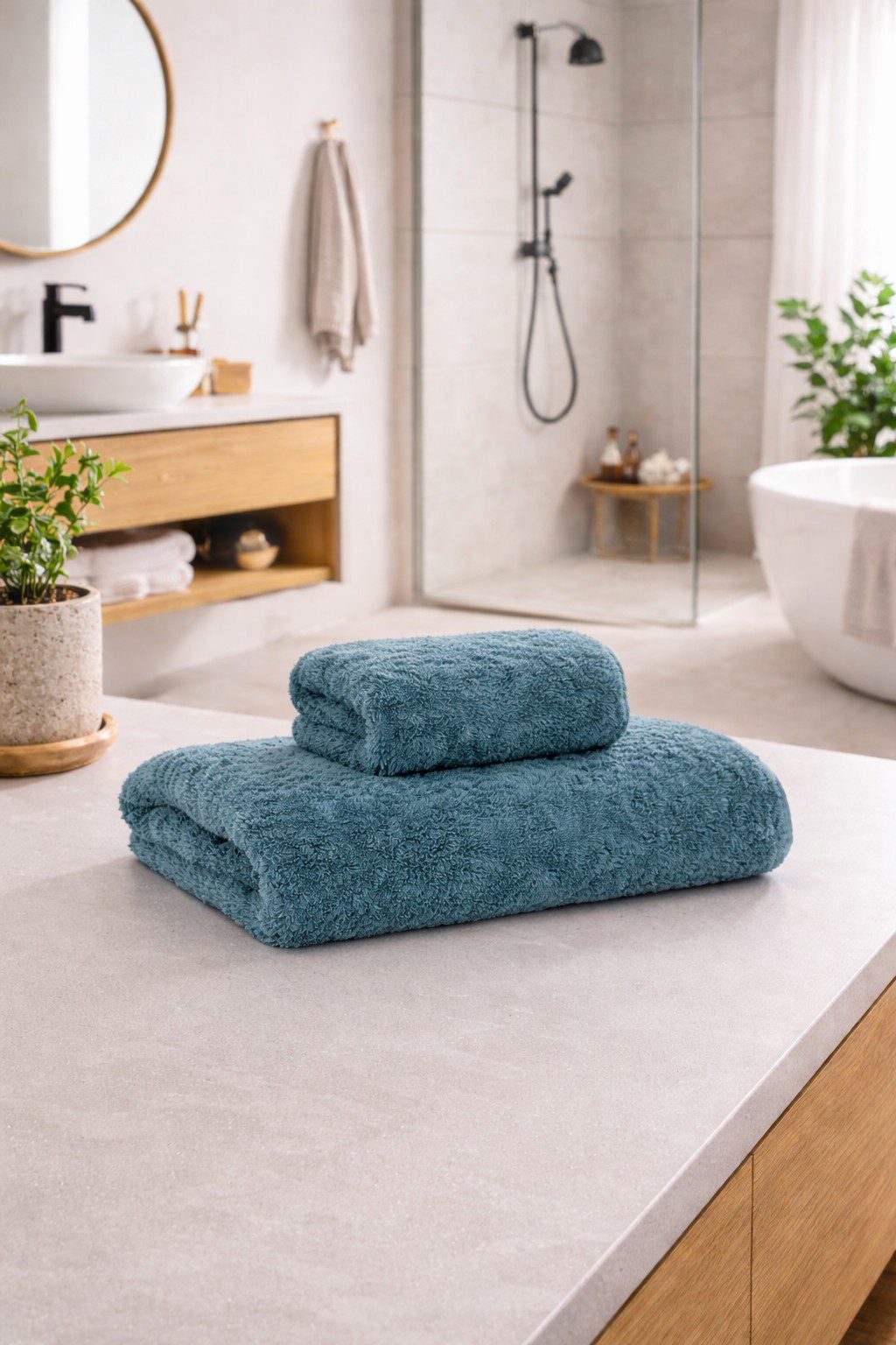 - 50×100 cm är en större och lyxigare handduk med ögla för upphängning på långsidan.